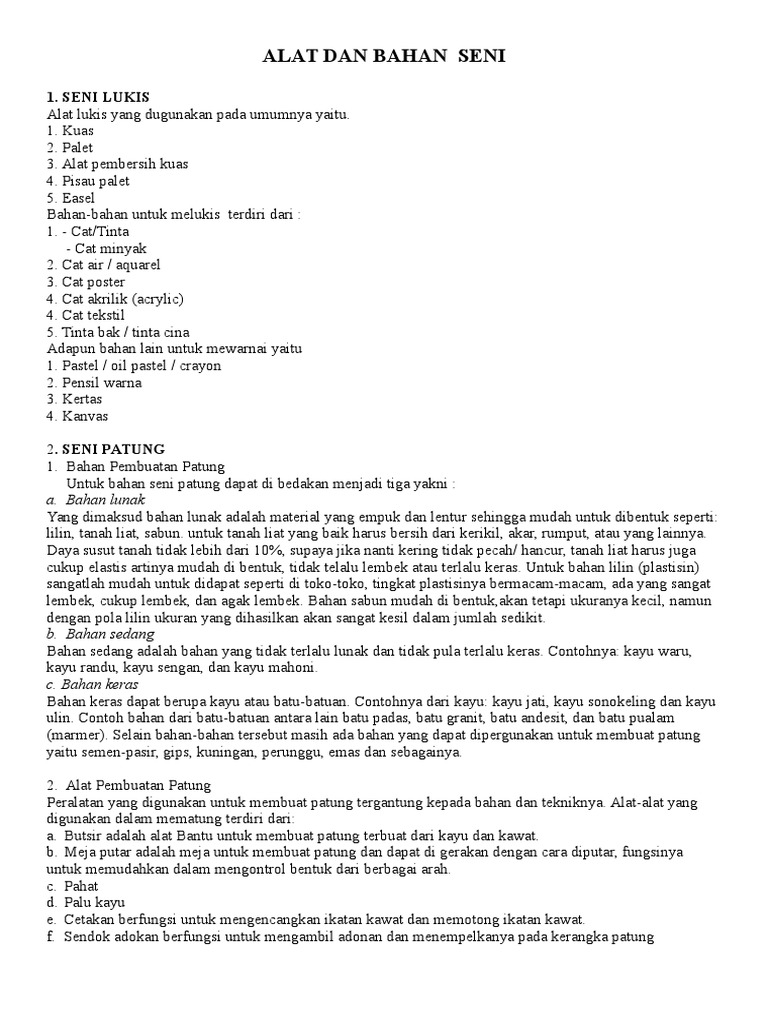 Definisi seni lukis merupakan pengembangan dari menggambar. Pensik merupakan alat utama yang dipakai untuk kanvas juga salah satu bahan yang harus ada saat melukis. Menentukan media berkarya (alat dan bahan) media, alat dan bahan yang dapat digunakan dalam. Mengenal alat dan bahan untuk melukis. Lukisan adalah cabang dari seni visual, di samping lukisan merupakan perkembangan integral dari menggambar. Seni lukis adalah contoh seni. Butsir adalah alat bantu untuk membuat patung terbuat dari kayu dan kawat. Berbicara tentang seni lukis, kali ini kita akan membahas tentang pengertian seni lukis menurut para ahli, teknik seni lukis, unsur unsur seni lukis, alat dan sukaryono 1998:7 menurutnya, seni lukis adalah ungkapan isi hati dan perasaan yang disebut sebagai bahasa seniman yang dikomunikasikan. Ini pelajaran kelas 10, materi seni rupa, sekolah menengah atas (sma). Alat dan bahan seni lukis. Seni lukis adalah salah satu cabang seni rupa 2d yang terpopuler, ikut pembahasan lengkap mengenai pengertian, aliran, tema, alat, media dan penggunaan alat lukis sangat bergantung pada media, teknik, aliran dan tema yang akan dibuat. Alat lukis yang dugunakan pada umumnya yaitu. Teknik ini adalah teknik melukis di mana alat melukis minyak diencerkan dengan cat minyak atau minyak biji rami.